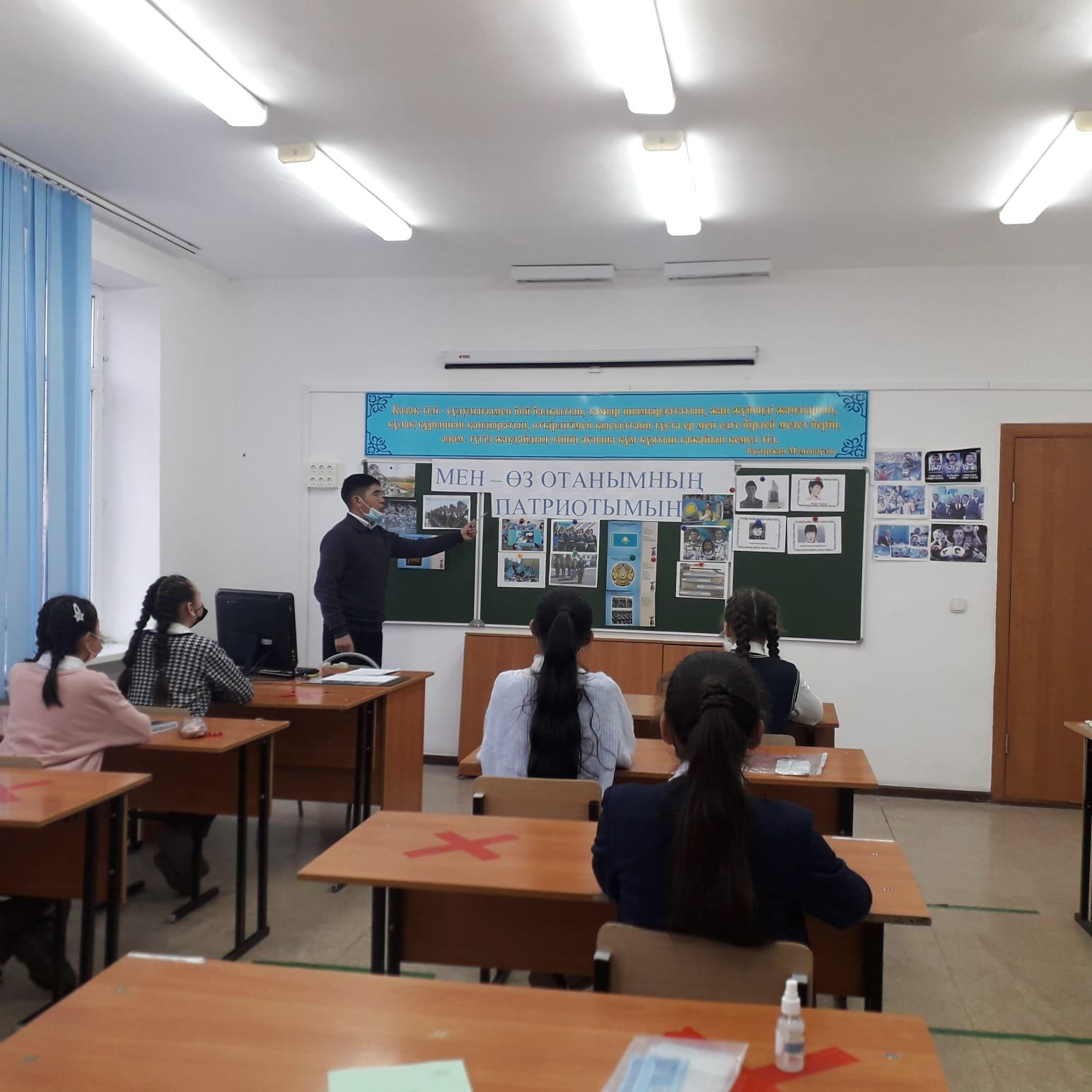 "Ғали Орманов атындағы орта мектебі, мектепке дейінгі шағын орталығымен" коммуналдық мемлекеттік мекемесінде 17 қаңтар күні 7-11 сынаптар арасында "Мен-өз Отанымның патриотымын" тақырыбында біріңғай тәрбие сағаттары өткізілді. » "Ғали Орманов атындағы орта мектебі мектепке дейінгі шағын орталығымен" коммуналдық мемлекеттік мекемесі