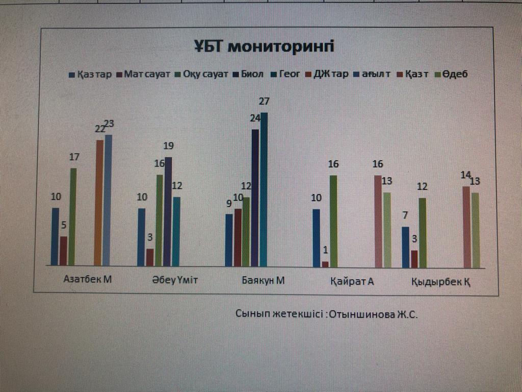 Ақпан айының 11 күні "Ғали Орманов атындағы орта мектебі, мектепке дейінгі шағын орталығымен" коммуналдық мемлекеттік мекемесінде 11 "А", "Ә" сынып оқушыларынан ҰБТ бойынша тапсырған сынама тест нәтижесі. » "Ғали Орманов атындағы орта мектебі мектепке дейінгі шағын орталығымен" коммуналдық мемлекеттік мекемесі