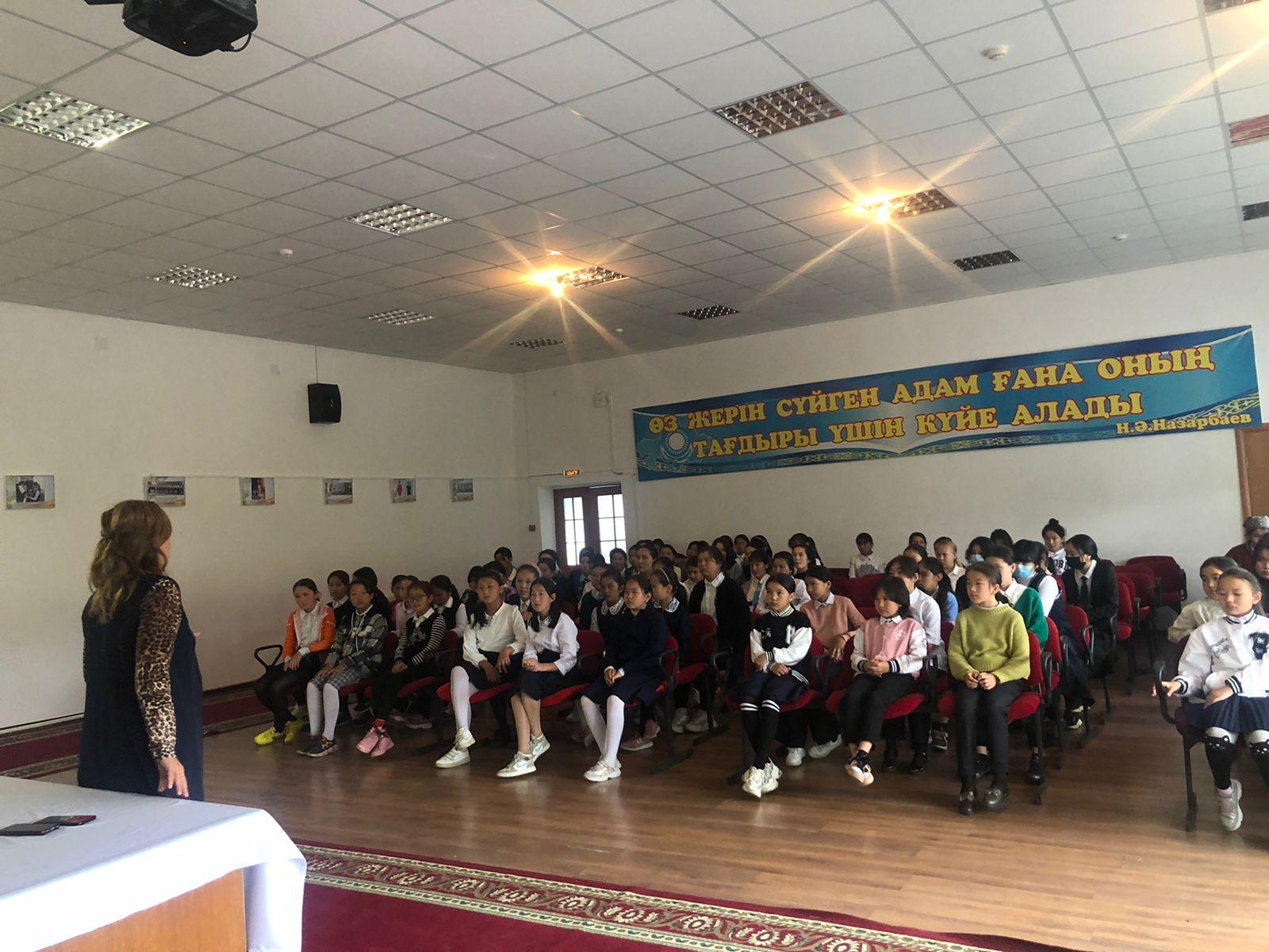 On May 5 , the psychologist of the school Abutalipova Sh . With and Deputy Directors for educational work Zhakiyakyzy Zh . Kenesova A. K. held a meeting for girls of grades 5-10 on the topic "education of girls is national education". Purpose: to educate girls in decency, politeness, sincerity, benevolence.