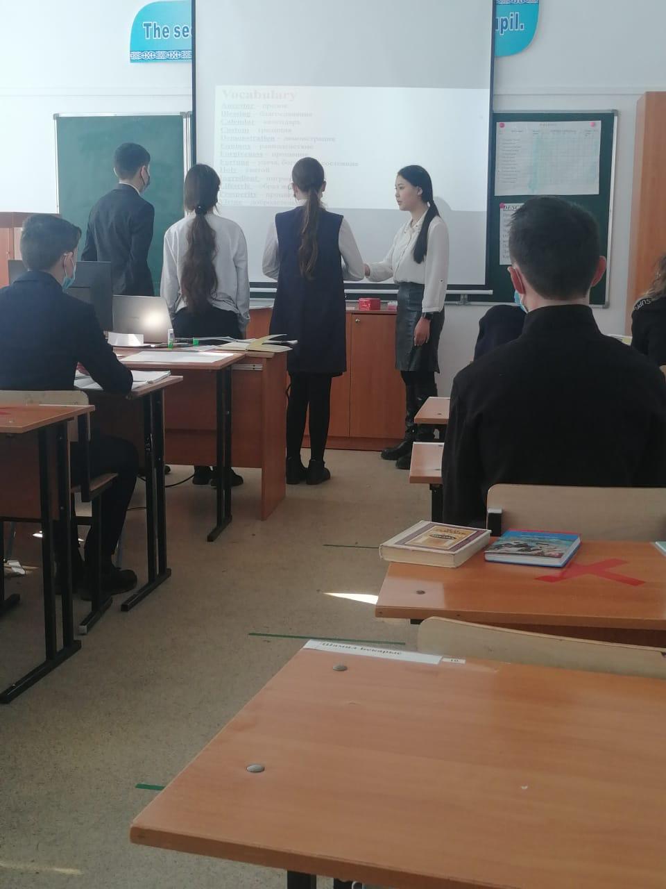 Жас маман апталығына сәйкес жоспар бойынша ағылшын тілі пәні мұғалімі Сабырбекова А 9 "Б" сынып оқушыларымен "Food and drinks" тақырыбында ашық сабақ өткізді. Открытый урок на тему" Food and drinks " » "Ғали Орманов атындағы орта мектебі мектепке дейінгі шағын орталығымен" коммуналдық мемлекеттік мекемесі