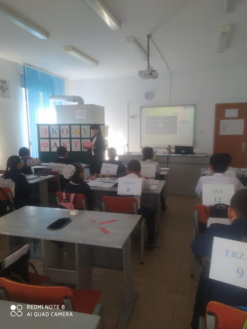14.04 as part of the week of natural science, a young specialist, biology teacher Kenesova A. held an open lesson in biology with 5th grade students on the topic "Environmental factors affecting the life of ecosystems."