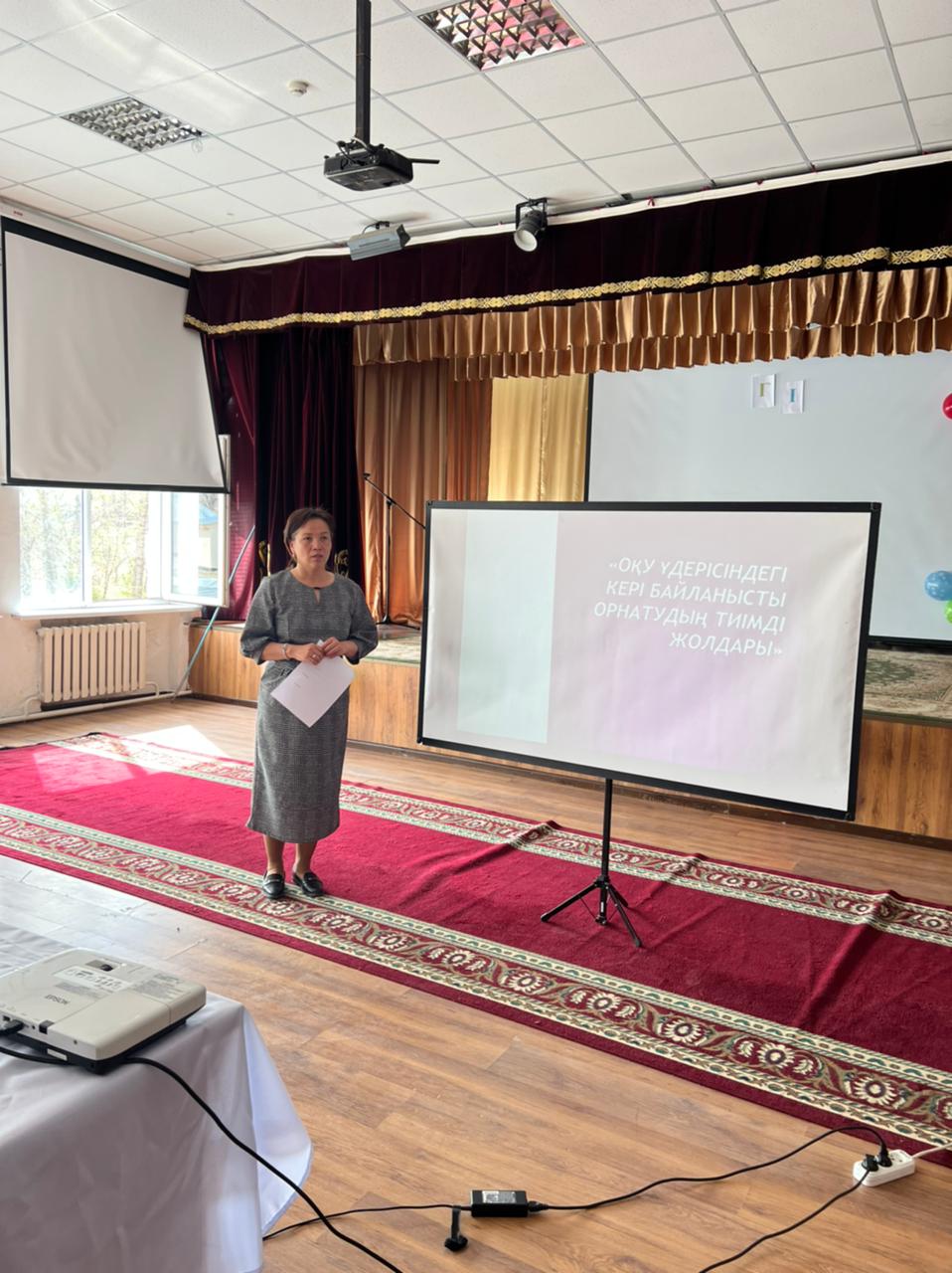 Chemistry teacher, head of the creative group of innovators K. Bolatova conducted coaching with teachers on the topic "Effective ways to establish feedback in the educational process".