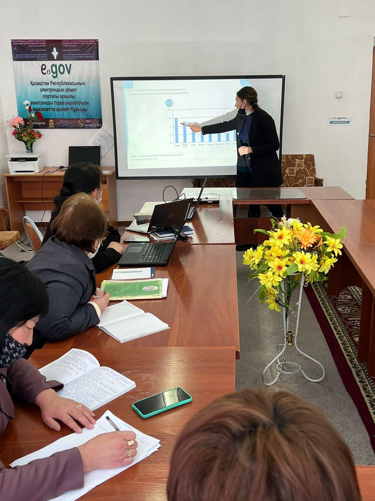 Заместитель директора по учебной работе-С. Абдрахманова и учитель казахского языка и литературы-М. Джаксыбаева на районном семинаре распространили опыт работы по организации учебно-воспитательного процесса в школе.
